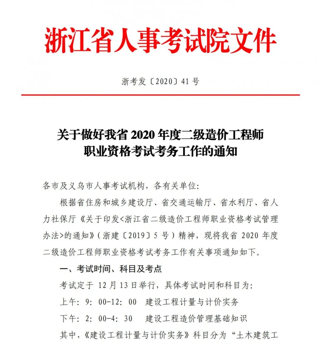 今年浙江省的二級造價師考試時間及內容已經公布!幫助大家提取了一些重要信息,快來看看吧!